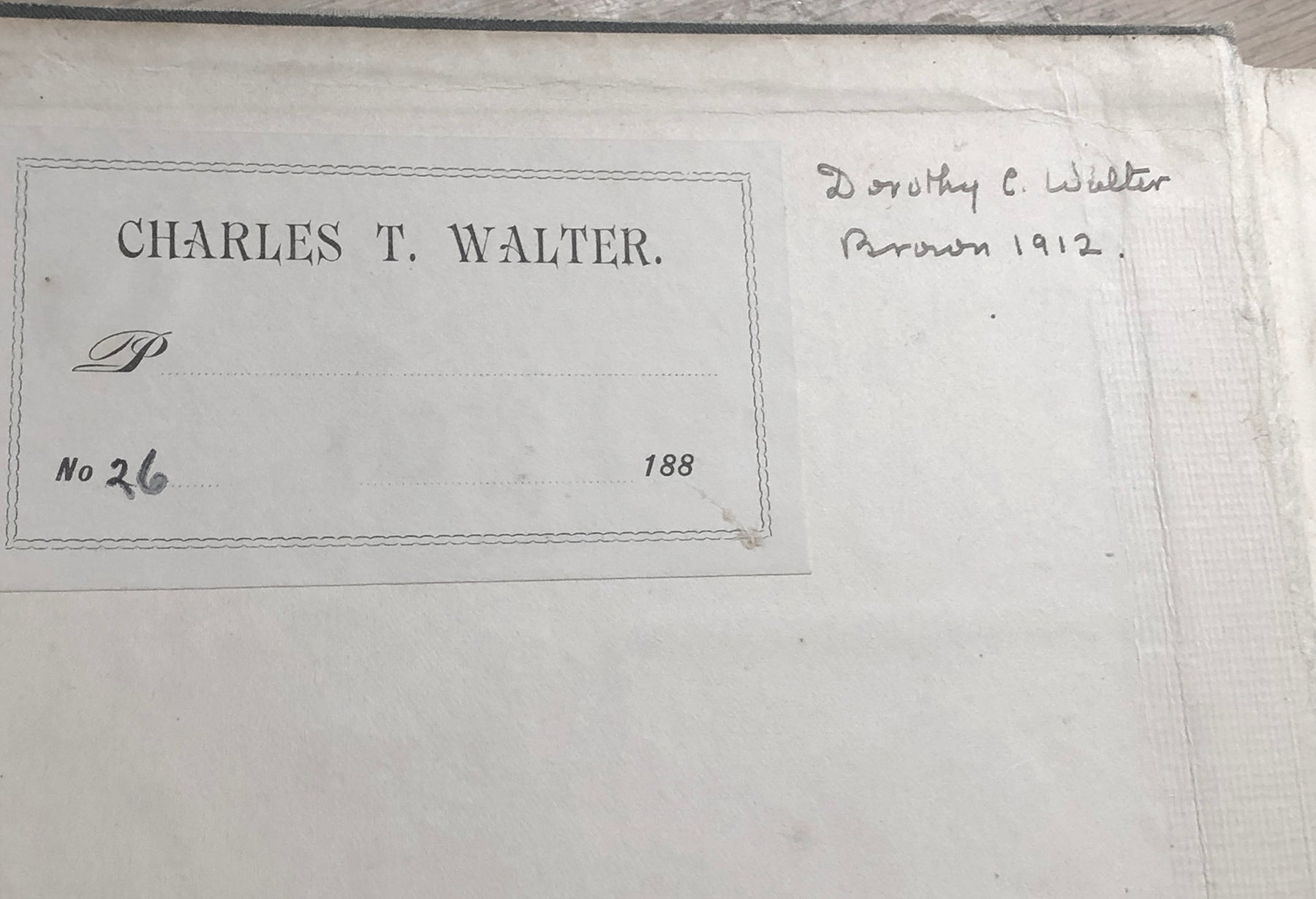 1> Charles T. Walter, late 1880's personal library collection sticker label #26 on inside cover. Mr Walter was an author and long time editor of the St. Johnsbury Republican Vermont newspaper.