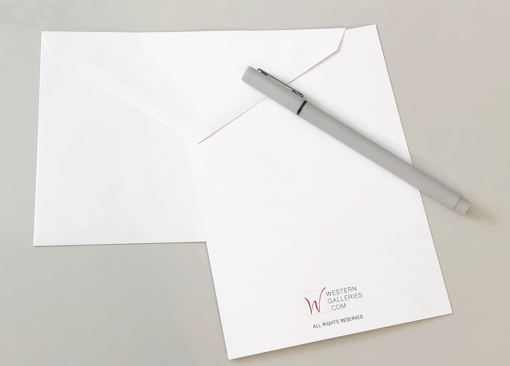 • Set of 25 Cards - Vertical 7"x5" flat cards (2 sided) + white envelopes.