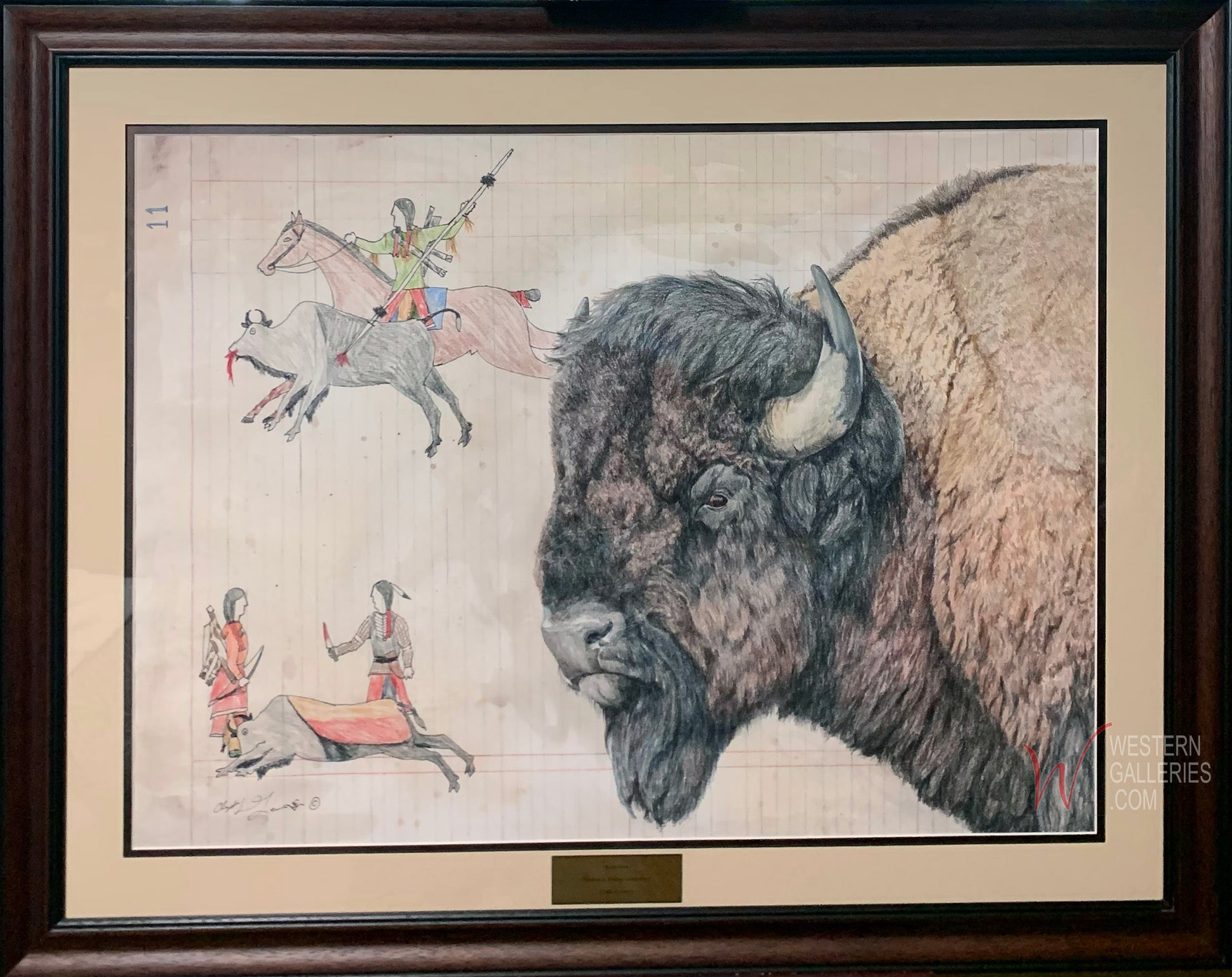 • ORIGINAL DRAWING: Professionally matted & framed with label, ready to hang. Overall size approximately: 30.25" x 38"