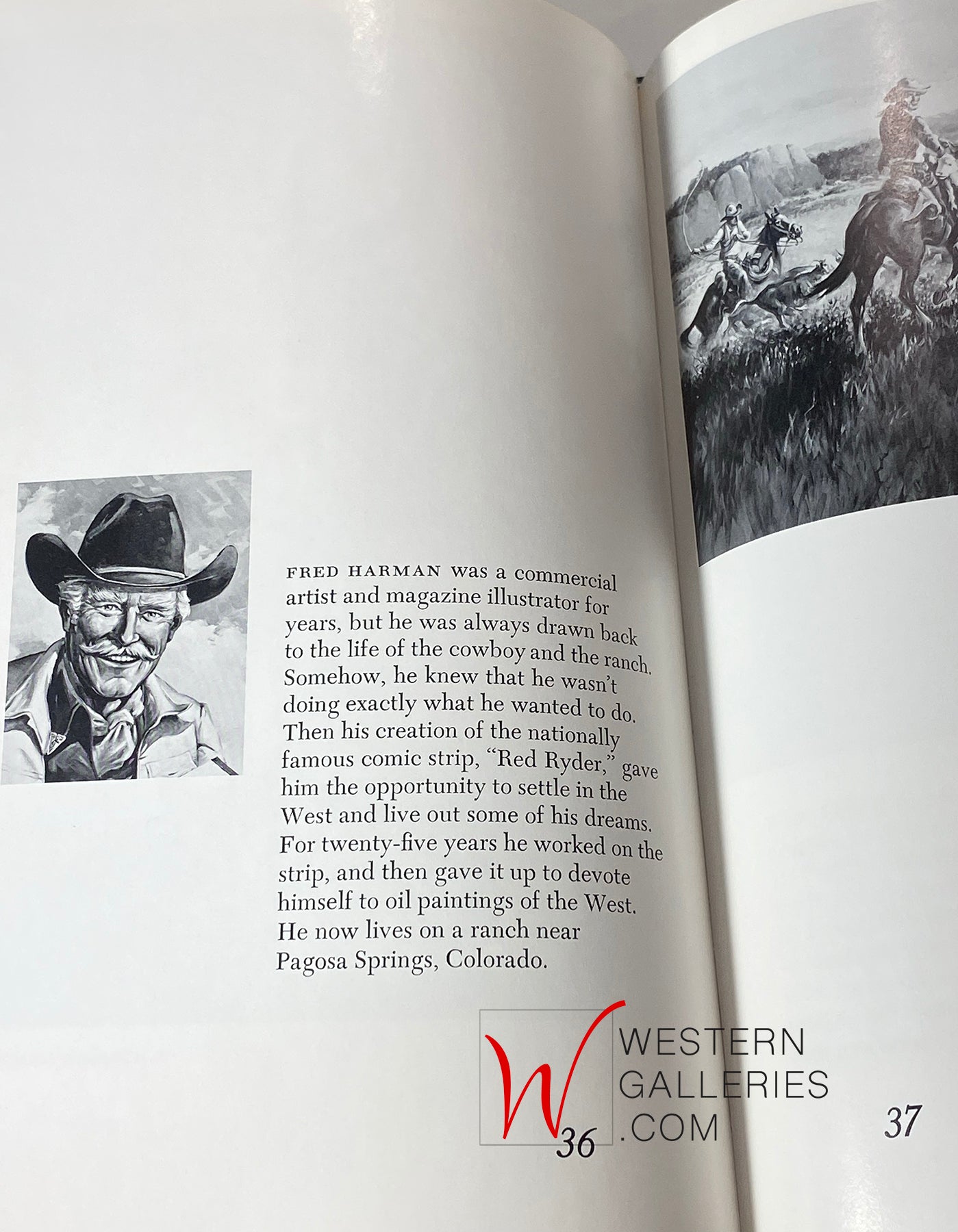 In the late 1930's Harman met publisher Stephen Slesinger who was searching for a western artist for his new scripted cowboy strip. Fred Harman, who was a working cowboy himself, knew the cowboy way of life. He drew Red Ryder and working together, the Red Ryder series quickly grew world-wide fame.