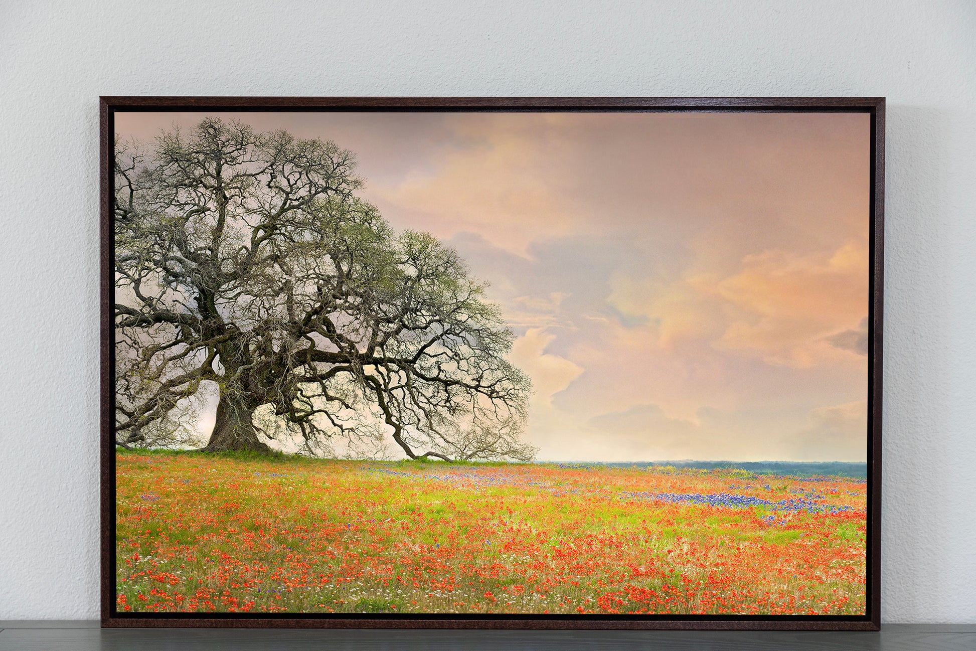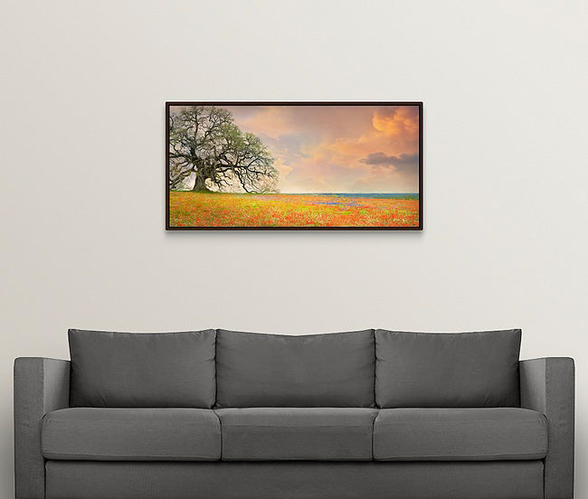 - Float Framed Canvas - Same solid face canvas with USA made poplar wood float frame, sealed back, 1.75" depth from wall, & ready to hang.
