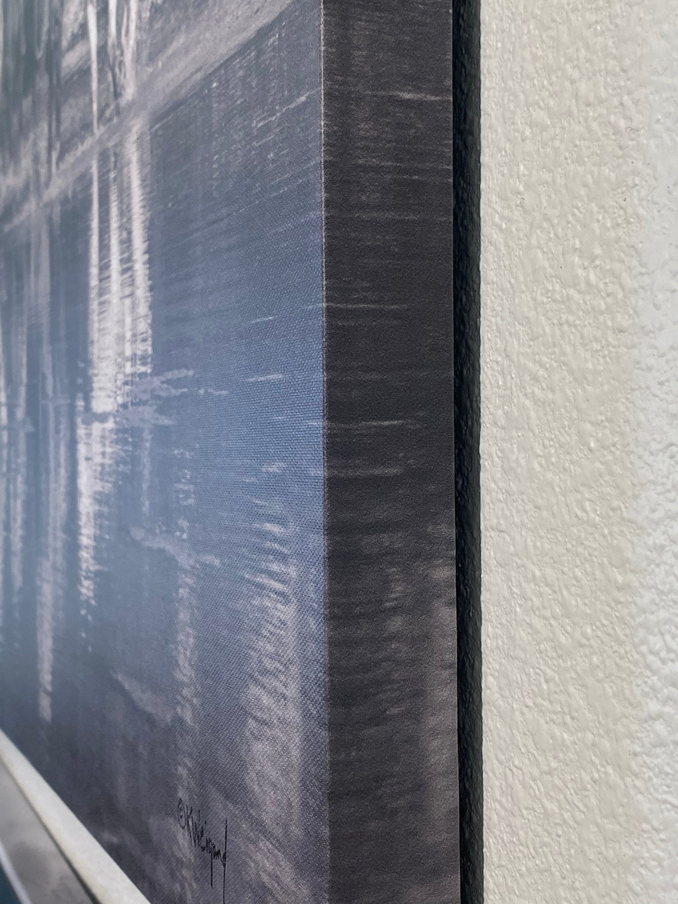 - Canvas - Gallery wrapped around edges, solid face with puncture resistent backing, sealed back, 1.25" depth from wall, & ready to hang.