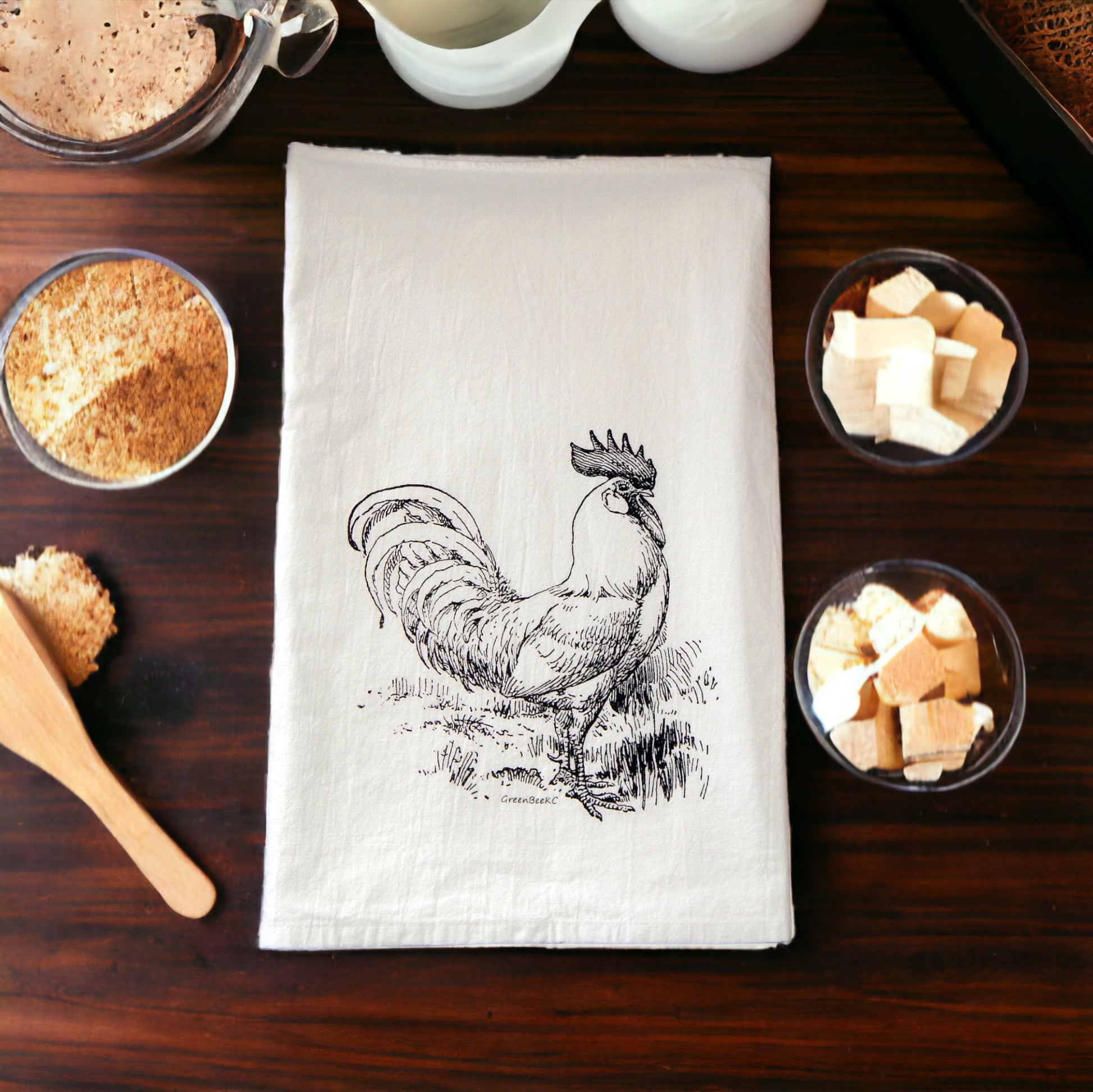Screen printed on white cotton flour sack. Kitchen tea towels are great for all types of heavy duty kitchen use, farm & country home decor, gift giving or gift baskets.