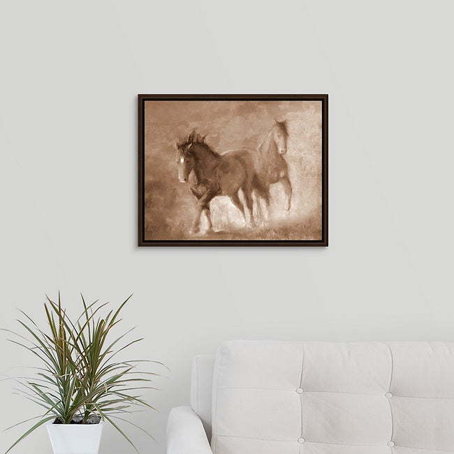- Floating Framed Canvas - With walnut brown USA made wood floating frame. 1.75" depth from wall & ready to hang.